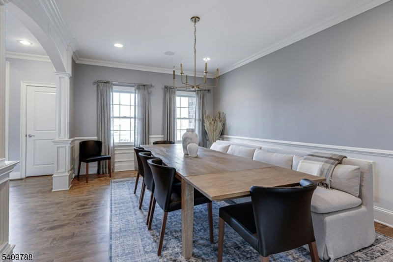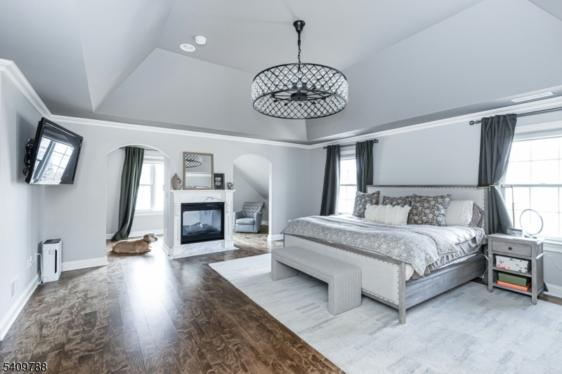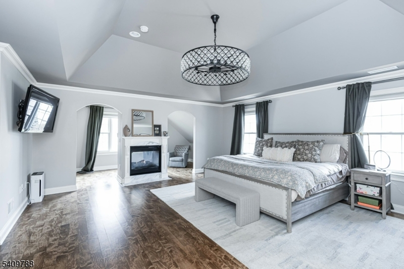 This elegant home is situated on Westfield's North side, in the Wilson Elementary School district, in a quiet picturesque suburban neighborhood, offering a luxurious lifestyle with easy access to Westfield's downtown shops, restaurants, train, and parks, and great commuting options into NYC. The expansive layout offers functionality for both daily living and entertaining, ample space for guests, and privacy within the home. The home sits on .44 acres with a fully fenced backyard. This luxurious home offers modern conveniences and functionalities that are coupled with exquisite details and a thoughtful layout that will serve well for the most discerning buyers. The 1st floor guest suite is private and tucked away from the main hub of the home. Upstairs, the primary suite is sizable, with dual walk in closets, a sitting room, a double sided fireplace, and a substantially sized primary bathroom. There are also 3 additional bedrooms, 2 more full baths, and a large laundry room on the 2nd floor. The 3rd level boasts an oversized 6th bedroom great for additional guest space, home office, or bonus rec space. The lower level is simply incredible: exposed brick, a full wet bar, a bonus room with attached full bathroom, a home gym, high ceilings, and great rec space. The whole house generator adds to the luxurious, modern conveniences. The backyard is expansive and private.
