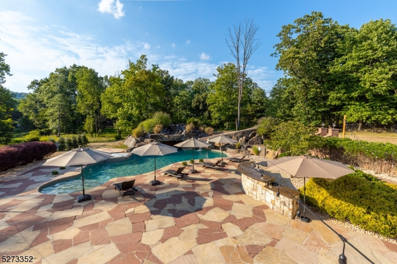 Luxurious, one of a kind custom estate, on a resort-like 8.5 acre property, fully furnished, turn key-ready offered for short term rent with a minimum one-month lease preferably up to 6 months (possibly longer) and flexible terms. Note, property may also be rented with ALL utility and maintenance costs included at monthly rental price of $18,500. This stunning home boasts over 11,000 square feet of living space across three beautifully finished levels. It features custom millwork, a newly remodeled Chef's kitchen, a soaring great room, and a grand foyer with a sweeping staircase. The master suite is truly luxurious. Outside, you'll find a pool with a waterfall, spa, water slide, and grotto, surrounded by lush landscape in a secluded private setting. The entire home, inside and out, showcases the finest craftsmanship and materials. An elevator connects the garage to the kitchen and second-floor bedrooms, adding convenience and accessibility. The walk-out lower level includes a high quality home theatre, wine cellar, cafe, bar, and media room. Additionally, the home offers six heated oversized garages and a deep setback with a winding driveway, ensuring privacy and in a very convenient location.