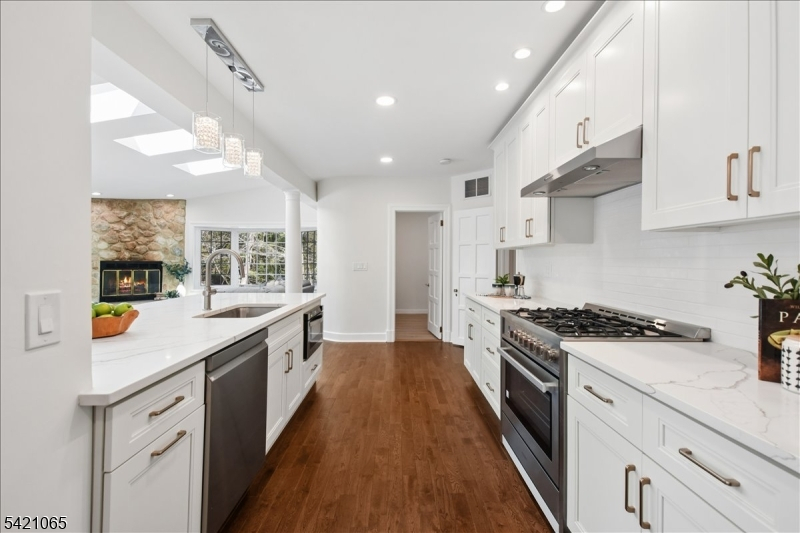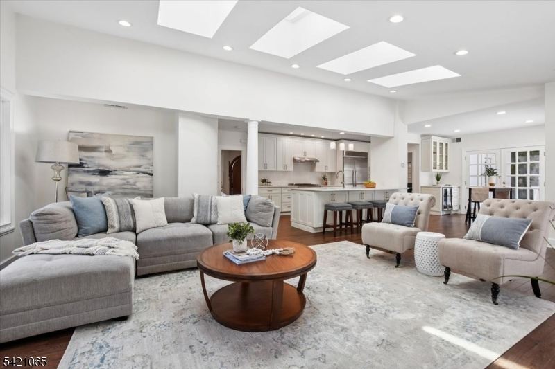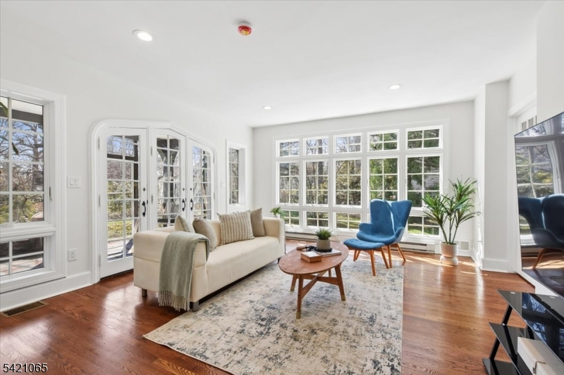 Nestled on a picturesque .36-acre property along a quiet, tree-lined street, this enchanting Tudor home beautifully blends timeless character with sun-drenched living spaces. Ideally located within walking distance to both the Short Hills and Millburn train stations and vibrant downtown, the home offers exceptional convenience paired with classic charm. Rich architectural details including original ceiling beams, leaded glass windows, and three fireplaces create a warm, inviting ambiance throughout.Flooded with natural light, the home's gracious interior features a stunning sunroom with floor-to-ceiling windows and an expansive, open-concept kitchen outfitted with stainless steel appliances and an oversized center island, seamlessly flowing into the family room with skylights, a gas fireplace, and French doors leading to a spacious deck perfect for indoor-outdoor living. The sunken living room adds to the home's distinctive appeal, while thoughtful design ensures both elegance and comfort at every turn.This charming residence offers 5 bedrooms and 5.1 baths, including a luxurious primary suite with a gas fireplace and spa-like bath. The second level features two additional en suite bedrooms and a guest bedroom, while the third-floor suite provides a private retreat ideal for an au pair, home office, or art studio, complete with a full bath and generous living space. This home is truly a rare and captivating offering.