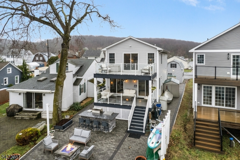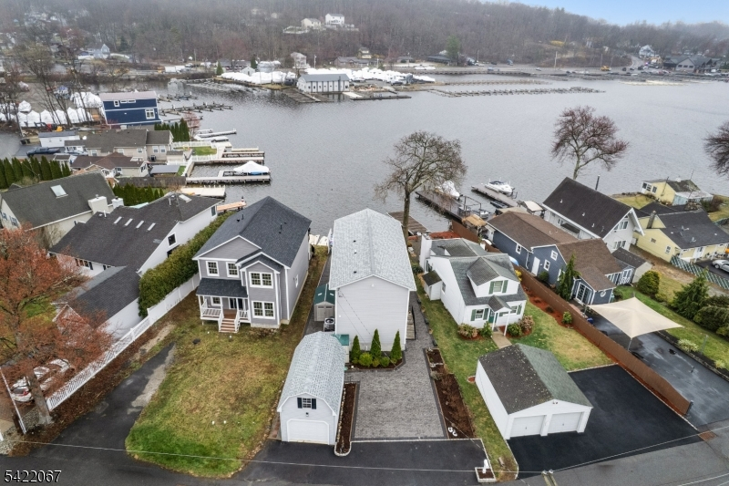 Welcome to lakefront living at its finest. Built in 2022, this custom-designed waterfront masterpiece offers a rare opportunity to own a truly one-of-a-kind property. Cherished by the same family since the 1940s, & now reimagined into a stunning modern, newly built retreat. Set on a level, fully paved lot for low-maintenance enjoyment, the home is complemented by a detached 2 story garage w/ electric perfect for storage or hobbies. Step inside to an open-concept main level where thoughtful design meets effortless style.The custom kitchen is a showstopper, featuring a spacious island, granite counters, walk-in pantry, & smart use of every inch. The living room is equally impressive wired for sound & anchored by sliding doors that frame breathtaking, unobstructed lake views of Lake Hopatcong, NJ's largest lake .Seamlessly extending your living space, a heated 2 level deck offers the ultimate setting for year-round enjoyment and unforgettable sunsets. Upstairs, retreat to a dreamy primary suite complete w/ a luxurious marble bath, dual shower heads, and private access to a second-level deck overlooking the water. 2 additional beds, a full bath, + convenient laundry complete the 2nd level. Designed for relaxation & entertaining, the outdoor space features a kitchen complete w/ granite bar area, firepit, jet ski dock, canoe storage, sheds,+ ample parking everything you need to fully embrace the lake lifestyle. A rare offering. A legacy property. A lifestyle you won't want to miss.