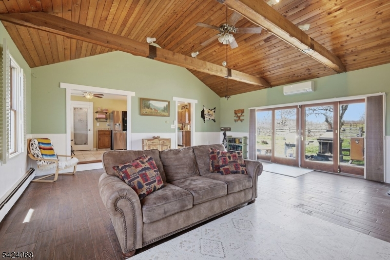 A rare opportunity to own a countryside hobby farm where space, character, and a flexible 4th bedroom/office come together effortlessly. Enjoy open land, scenic views, and a setting that backs to preserved farmland'just minutes to Rt 80. The property includes a small barn with water, lean-to, and tack room, fenced areas for animals, a chicken coop, and additional outbuildings for storage. In addition to the home's 2-car garage, there is a detached 2-car garage with a walk-up loft, offering excellent space for storage, a workshop, or future creative use.The main home offers a spacious great room with a wood stove, vaulted wood ceilings, and exposed beams'creating a warm, inviting atmosphere with a comfortable layout for everyday living. A standout feature is the private in-law suite with its own entrance, kitchenette, living space, full bath, and bedroom/office'ideal for guests. A place where space, versatility, and a peaceful setting make it easy to feel right at home.