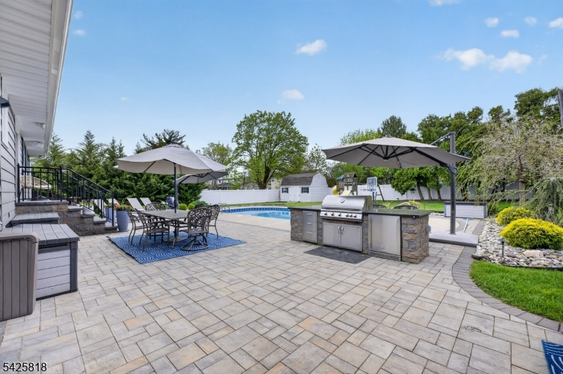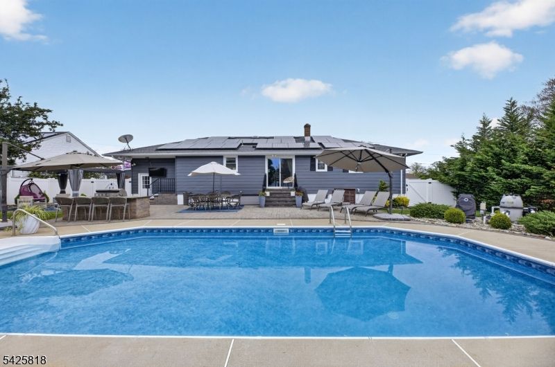 Beautifully maintained 3-bedroom, 2.5-bath ranch in desirable North Brunswick offering approx. 1,400 sq ft plus a large, finished basement with potential for a 4th bedroom, office, gym, or rec room. The true highlight of this home is the incredible backyard designed for entertaining, featuring an in-ground pool, expansive paver patio, covered pergola lounge area, outdoor kitchen, multiple seating and dining spaces, and a large, fenced yard perfect for hosting summer gatherings or relaxing at home. The main level offers comfortable living space, updated baths, and a functional layout with warm, inviting finishes throughout. The finished basement adds valuable bonus space and flexibility for a variety of needs. Solar panels provide significant savings and the benefit of little to no electric bills. Conveniently located close to public transportation, major highways, shopping, dining, and everyday conveniences. Address is also eligible for charter school attendance. A rare opportunity to own a move-in ready home with exceptional outdoor living and great commuter access in one of North Brunswick's most convenient locations. Showings begin 4/25/26!